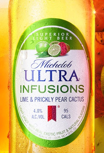 Meet Michelob ULTRA Infusions Lime and Prickly Pear Cactus. A superior light beer infused with lime peels and prickly pear cactus, loaded with exotic taste and free of artificial colors and flavors. Its beer meets exotic fruit, at only 95 calories per bottle.